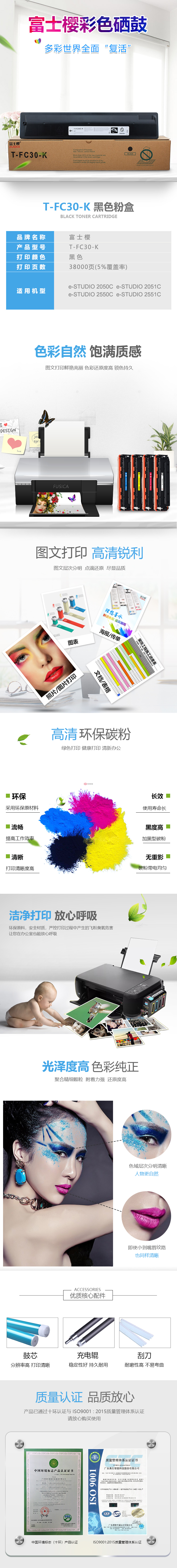 自營富士櫻(FUSICA)墨粉/墨盒(T-FC30C-K)/黑色/適用東芝TOSHIBA e-STUDIO 2050C 2051C 2550C 2551C/支