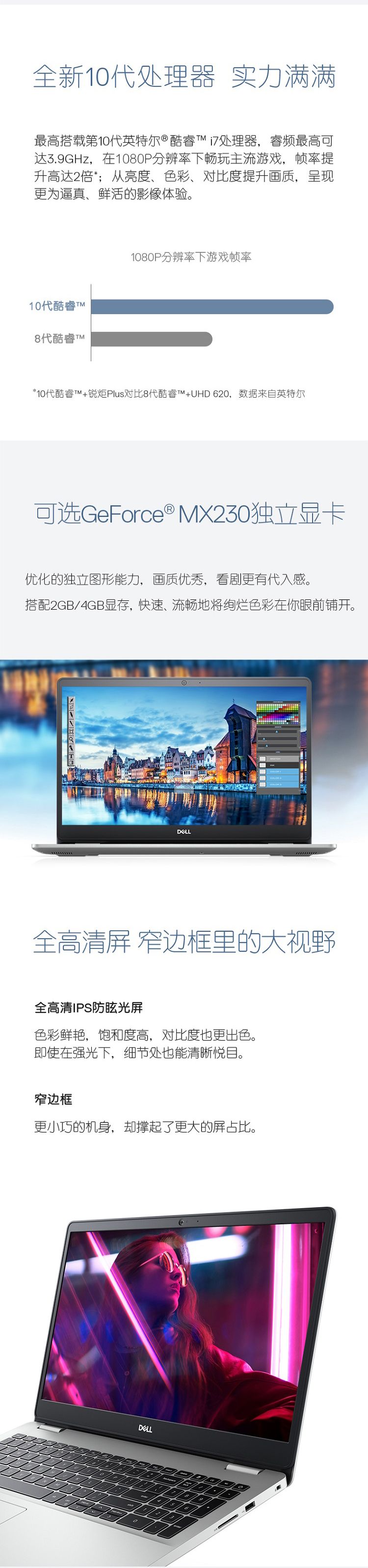 商品名稱(chēng):戴爾DELL靈越5000 酷睿i5 15.6英寸網(wǎng)課學(xué)習(xí)輕薄筆記本電腦(i5-1035G1 8G 512GSSD MX230 2G獨(dú)顯)銀