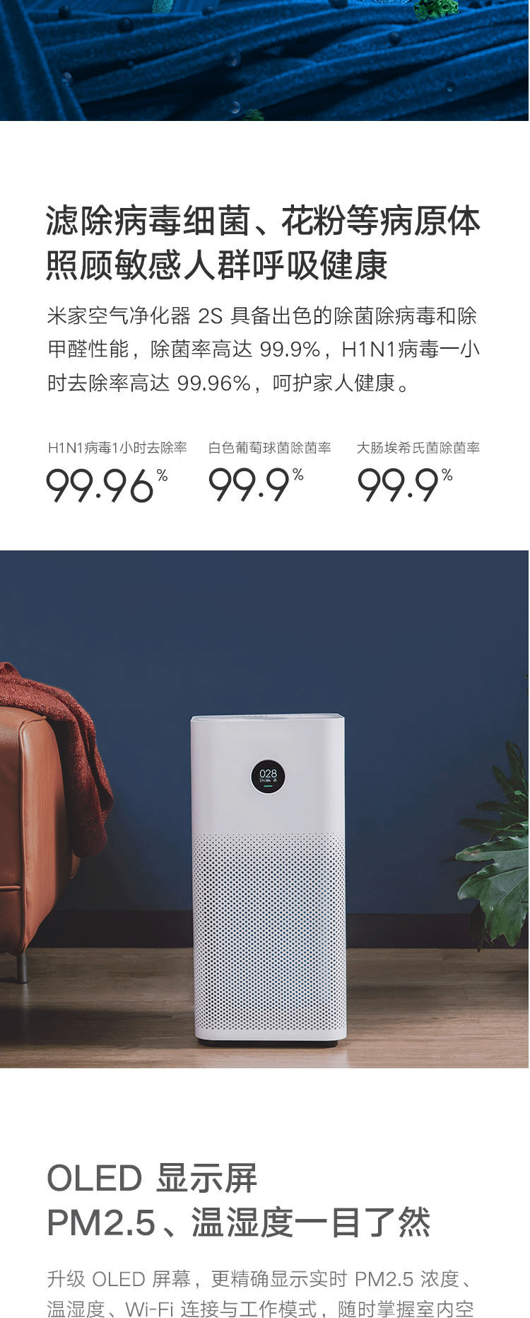 商品名稱:米家 小米空氣凈化器2S 家用除甲醛除煙味PM2.5 靜音設(shè)計 智能互聯(lián) AC-M4-AA 29W