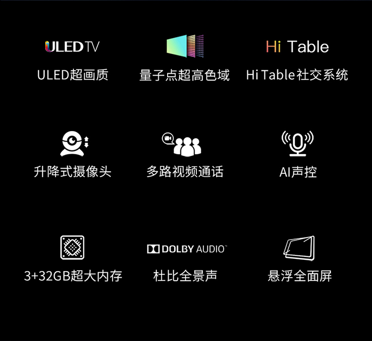 商品名稱:海信(Hisense)55E8D 社交電視 HiTable 55英寸 ULED 量子點 AI聲控 懸浮全面屏 教育 電視機