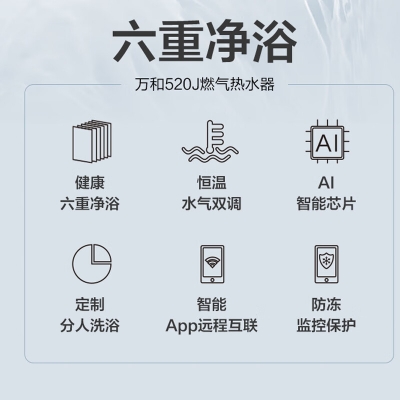 商品名稱:萬和(Vanward)16升燃氣熱水器天然氣感溫水氣雙調(diào)精控恒溫智能防凍保護6重健康浴JSQ30-520J16