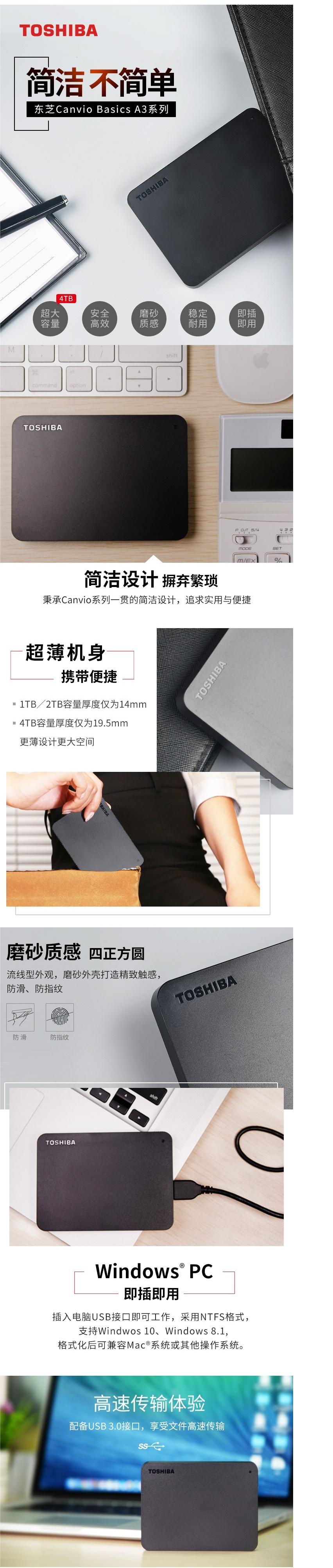 商品名稱:東芝(TOSHIBA) 4TB 移動硬盤 新小黑A3 USB3.0 2.5英寸 商務(wù)黑 兼容Mac