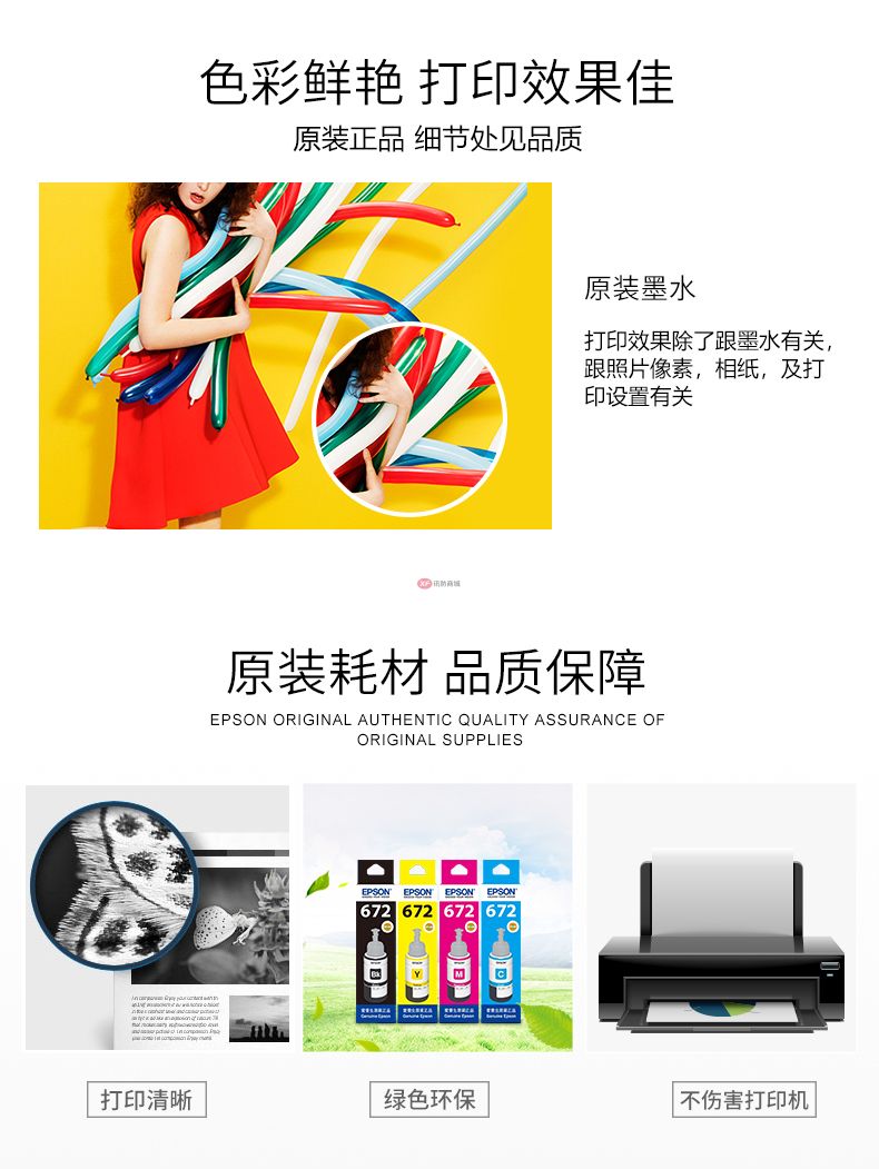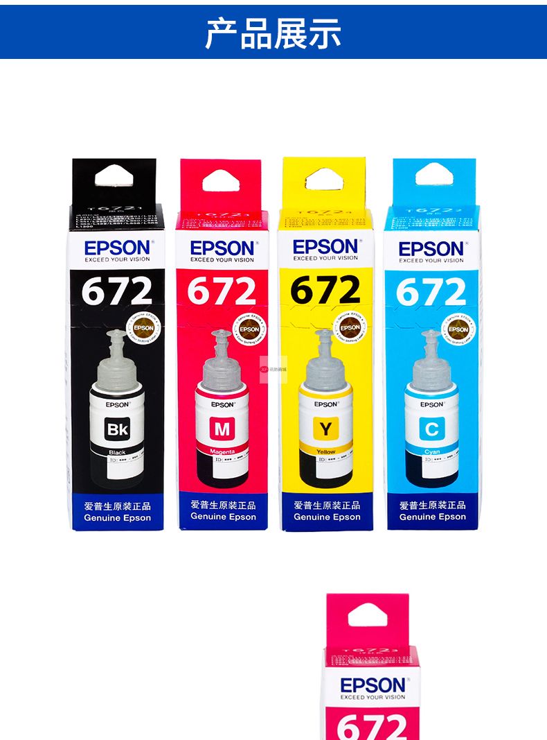 自營(yíng)愛(ài)普生T6721原裝墨水L380 L385 L485 L551 L1300 L360 L220打印機(jī) T672愛(ài)普生原裝黃色墨水