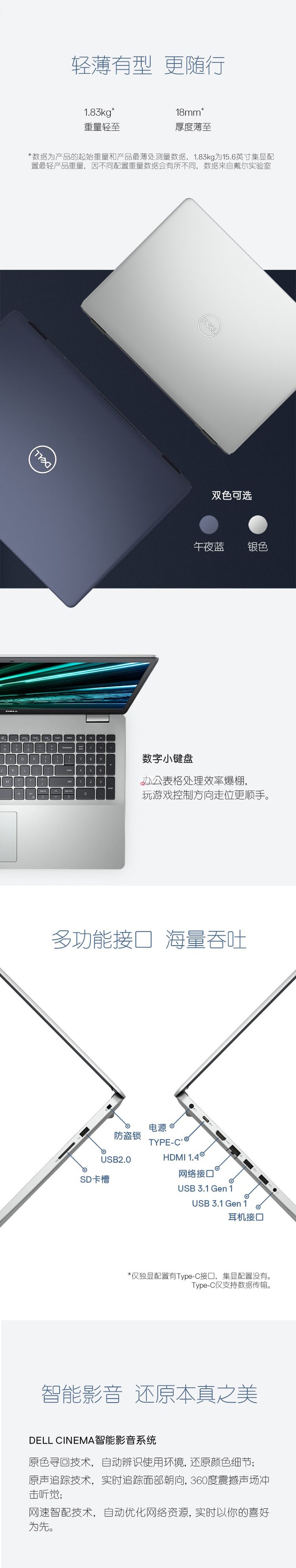 自營(yíng)戴爾DELL靈越5000 酷睿i5 15.6英寸網(wǎng)課學(xué)習(xí)輕薄筆記本電腦(i5-1035G1 8G 512GSSD MX230 2G獨(dú)顯)銀