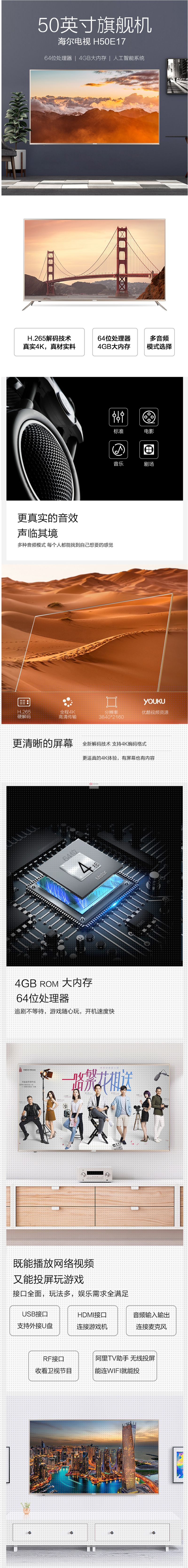 商品名稱:海爾 H50E17 電視機 50英寸 3840*2160 分辨率