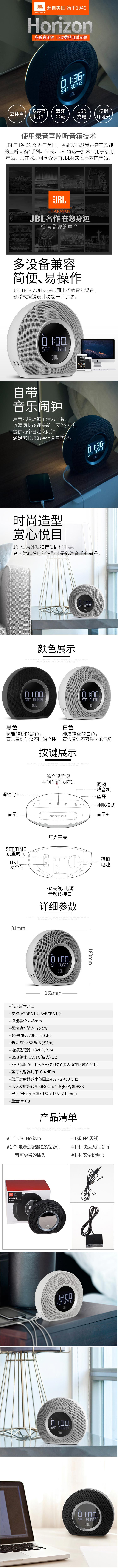 商品名稱:JBL Horizon 音樂地平線 藍(lán)牙小音箱音響 桌面迷你音響音箱 鬧鐘 收音機(jī) Horizon 黑色