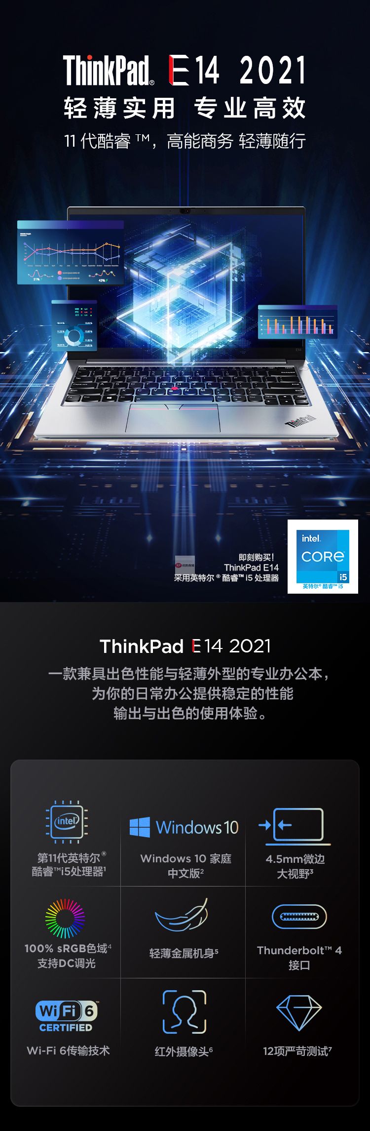 商品名稱:ThinkPad E14 14英寸筆記本電腦租賃(I3-10110U/8G/256G SSD/核顯/14/FHD/WIN10家庭版)