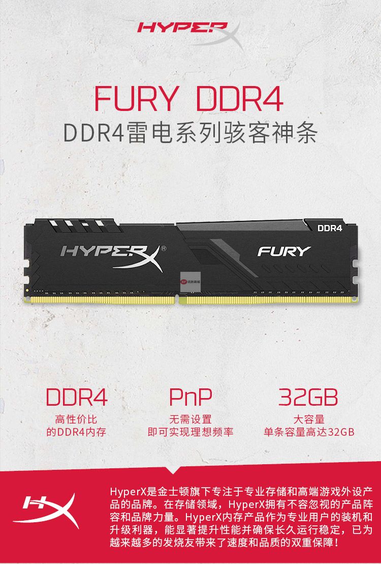 自營(yíng)金士頓 (Kingston) 16GB(8G×2)套裝 DDR4 2666 臺(tái)式機(jī)內(nèi)存條 駭客神條 Fury雷電系列