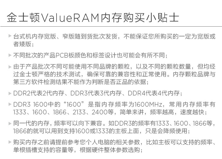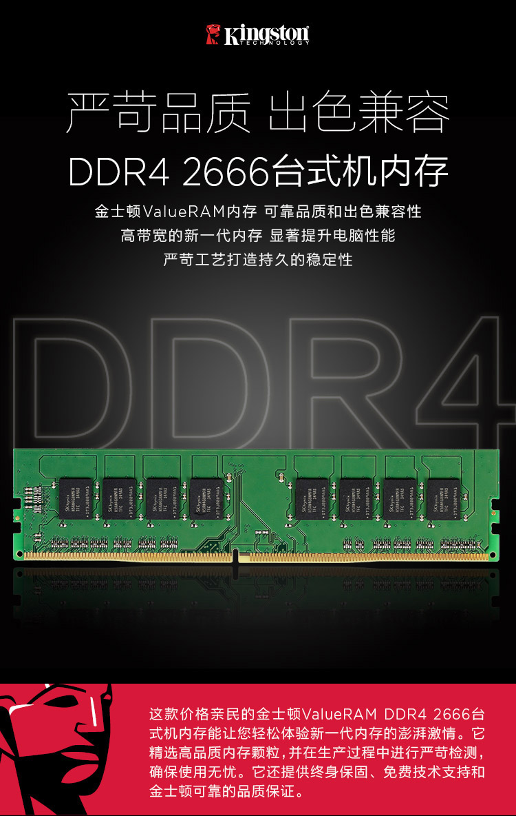自營金士頓 (Kingston) 8GB DDR4 2666 臺式機(jī)內(nèi)存條