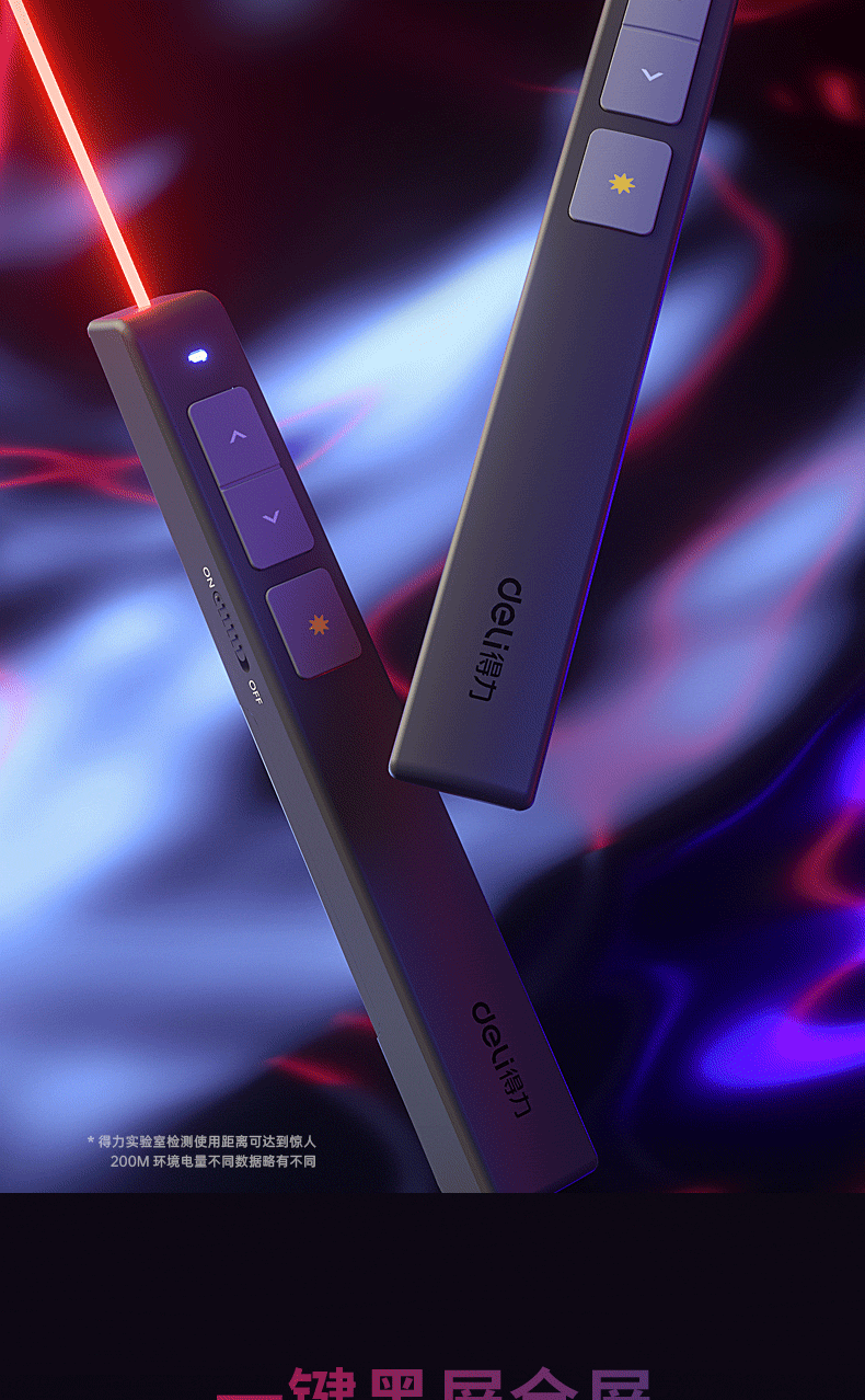 商品名稱(chēng):得力(deli)360度控制教師專(zhuān)用PPT投影筆激光翻頁(yè)筆教鞭電子筆演講筆 無(wú)線演示翻頁(yè)器課件筆 紅光 黑色2802