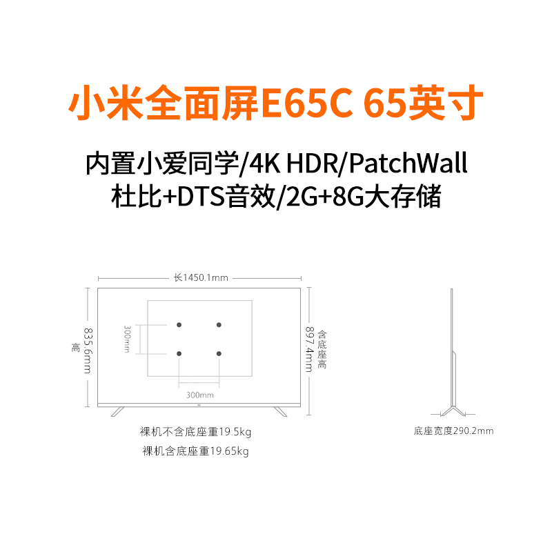 商品名稱:小米(MI)電視全面屏E65C/S 65英寸 4K超清網絡人工智能語音智能纖薄機身教育平板電視 全面屏電視E65C 65英寸(含電視墻掛支架加強型)