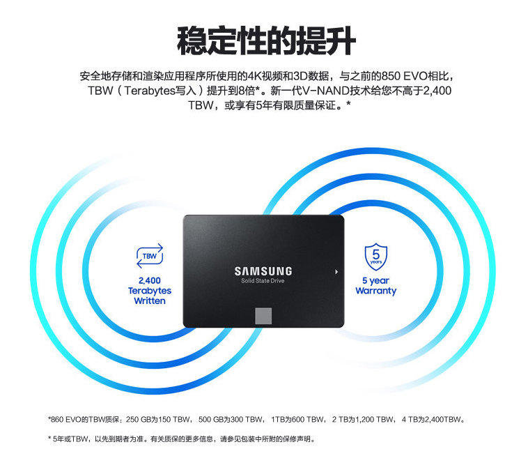 商品名稱:三星(SAMSUNG) MZ-77E250B 870 EVO 250G SATA3 2.5英寸SSD固態(tài)硬盤