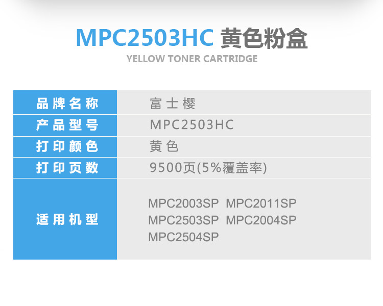 商品名稱:富士櫻(FUSICA)MPC2503HC黃色粉盒 適用理光MP C2003SP C2011SP C2503SP C2004SP C2504SP