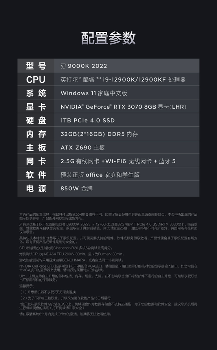 商品名稱:聯(lián)想(Lenovo)拯救者刃9000K 2022游戲電腦主機(12代酷睿i9-12900KF RTX3070 32G DDR5 1TB SSD 側透 )