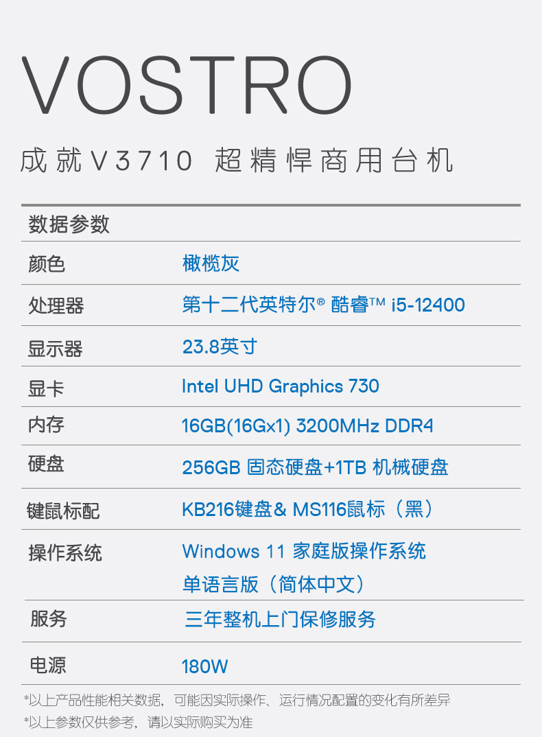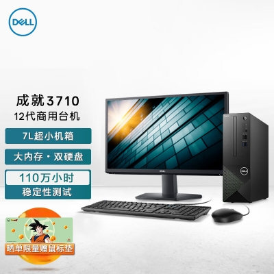 自營戴爾dell成就3710臺式機電腦主機 商用辦公電腦整機 (12代i5-12400 16G 256GSSD+1TB WiFi Win11)23.8英寸