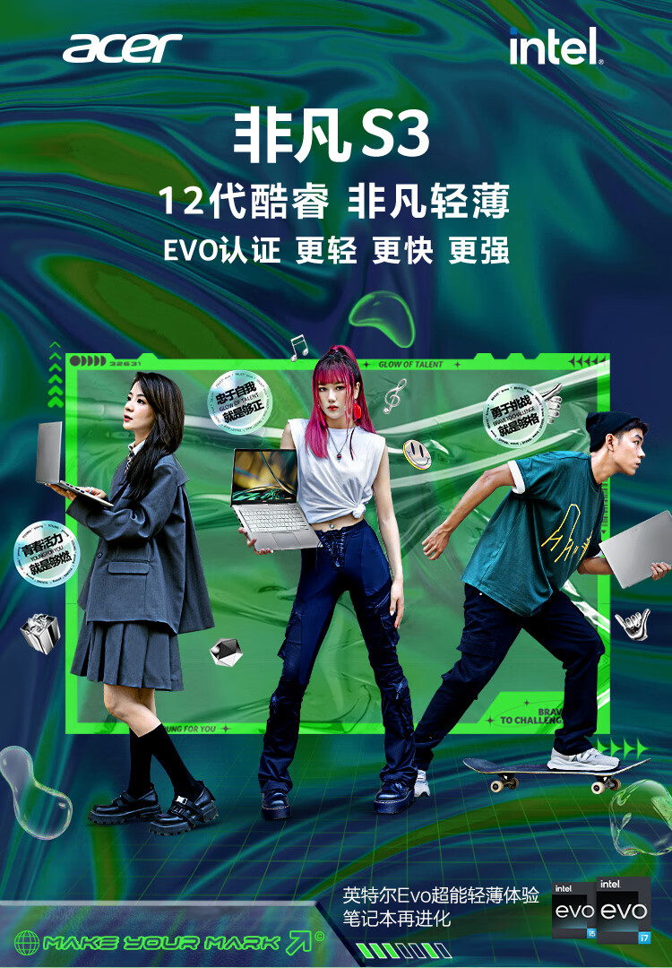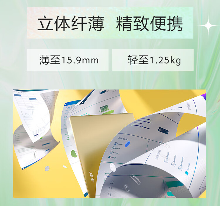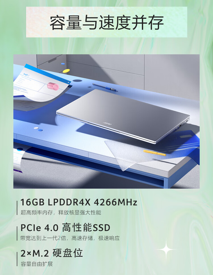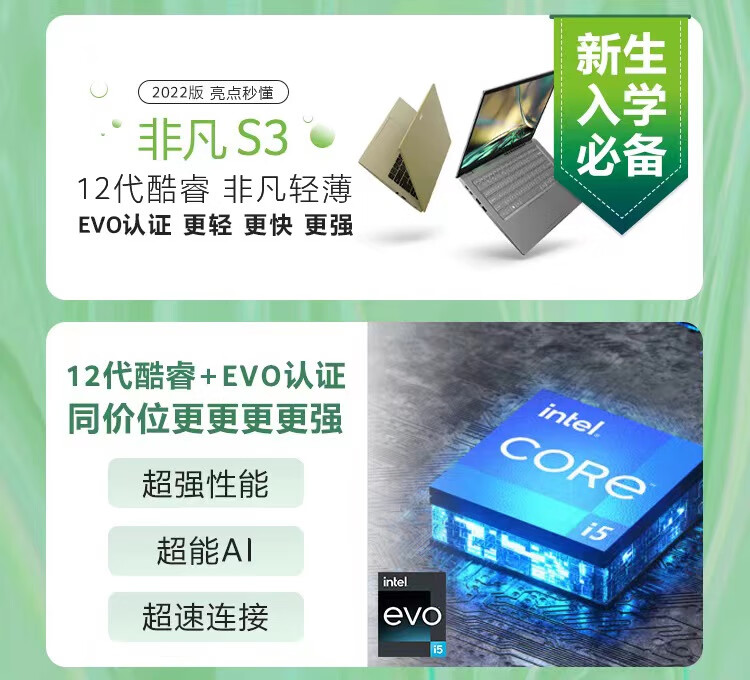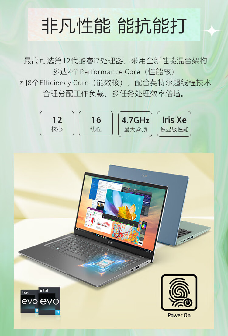 自營宏碁(Acer)非凡S3 全新12核Evo超能輕薄本 14英寸2.5K高色域 辦公學生筆記本電腦(12代i5-1240P 16G 512G)銀