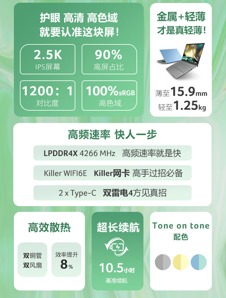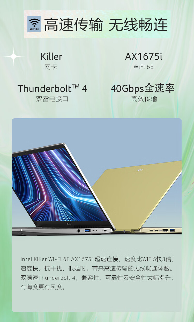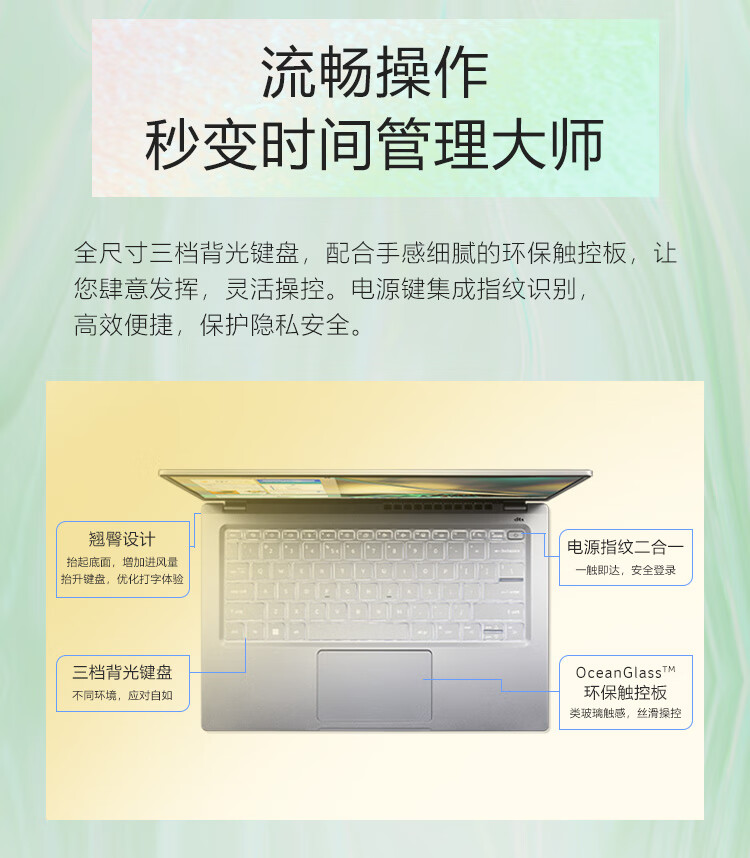 商品名稱:宏碁(Acer)非凡S3 全新12核Evo超能輕薄本 14英寸2.5K高色域 辦公學生筆記本電腦(12代i5-1240P 16G 512G)銀