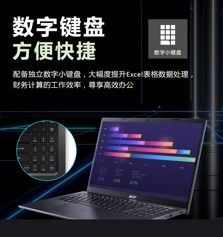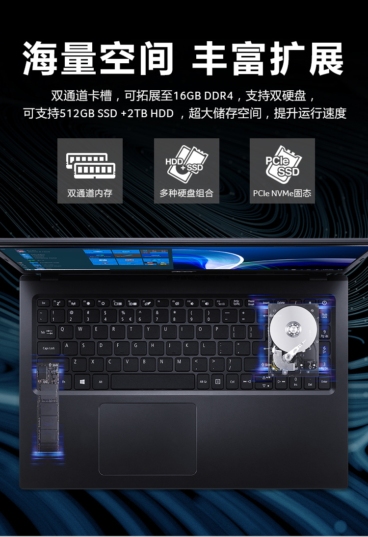 商品名稱:宏碁(Acer)墨舞EX215 15.6英寸輕薄大屏辦公筆記本(英特爾四核N5100 8G 256GSSD 全高清防眩光霧面屏 Win11)