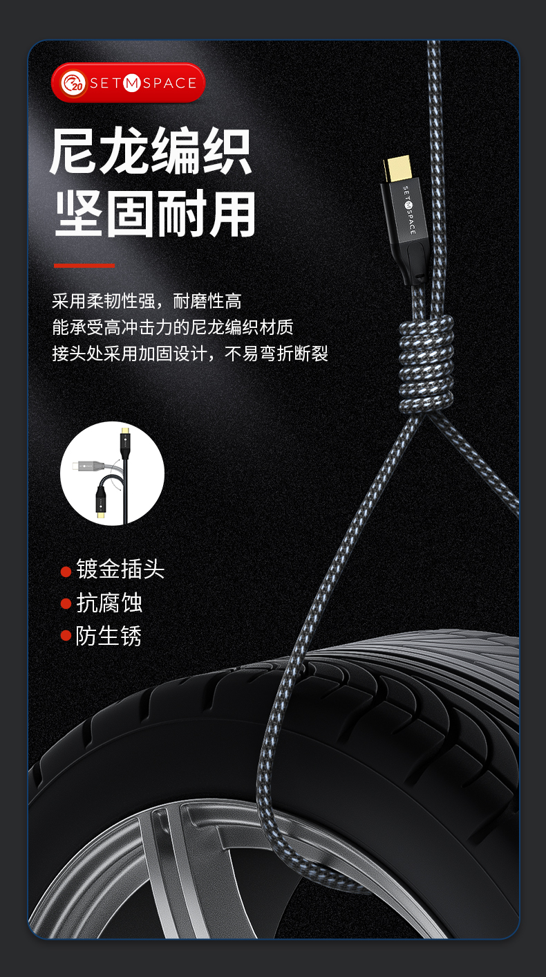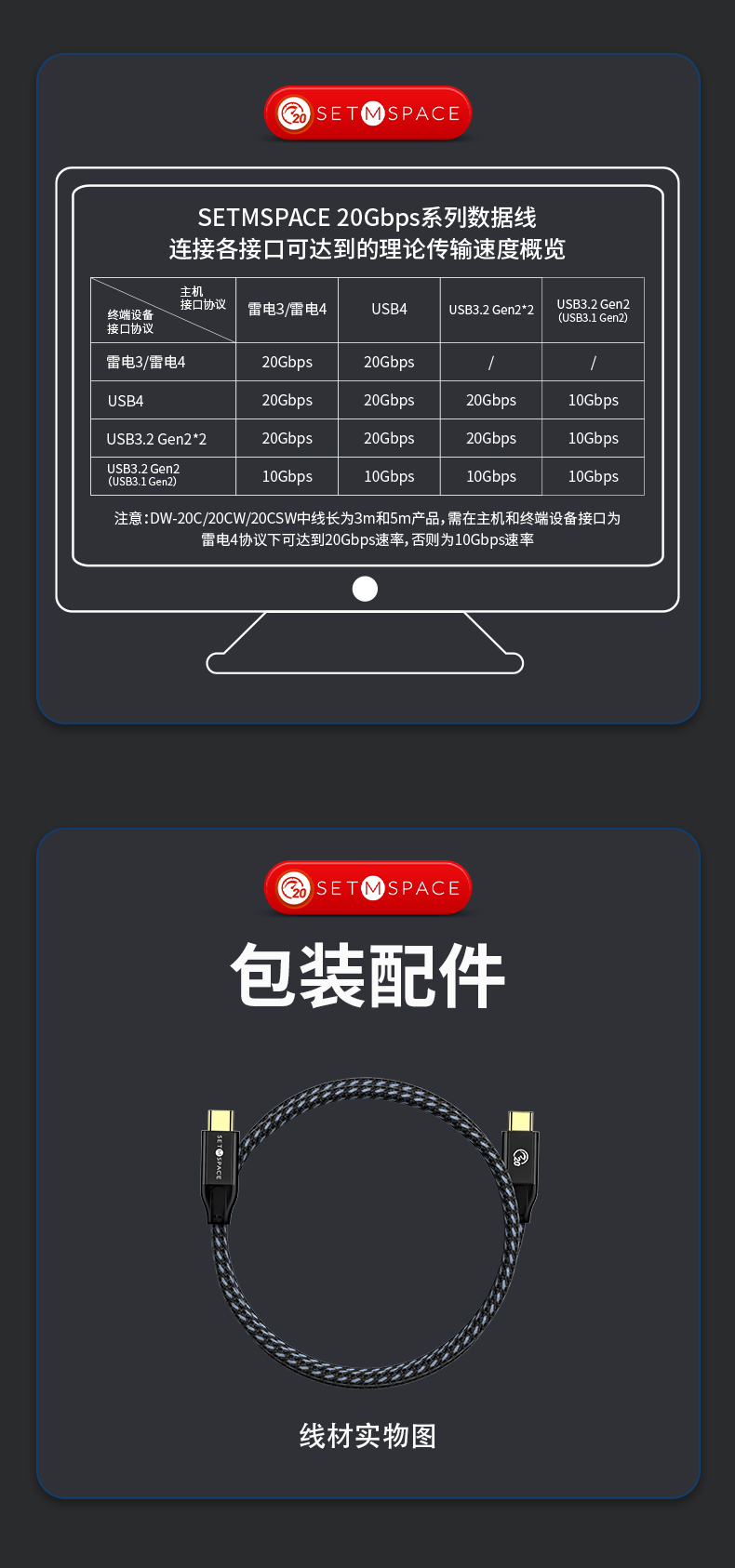 自營(yíng)SETMSPACE (合金桌面)USB3.2Gen2*2全功能type-c數(shù)據(jù)線顯示器視頻連接線快充 20Gbps USB3.2 C直-C直 線長(zhǎng)0.5m