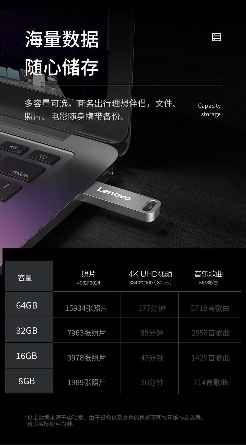 商品名稱:聯(lián)想(Lenovo)64GB USB3.1 U盤 SX1速芯系列銀色 金屬耐用 商務(wù)辦公必備