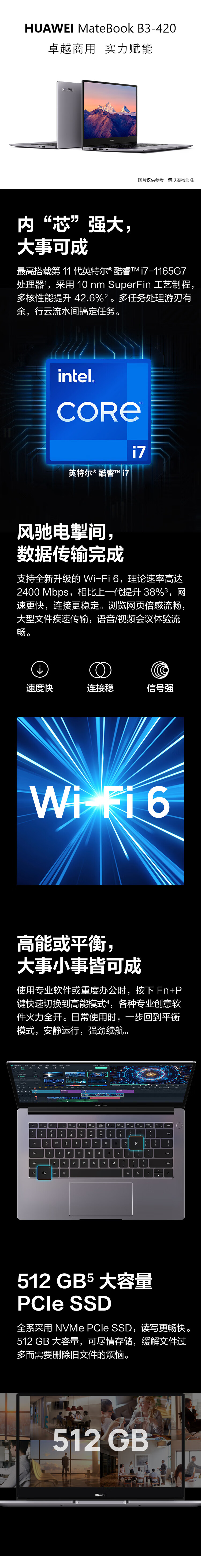 商品名稱:華為筆記本電腦 MateBook B3-420 14英寸輕薄本 (i7-1165G7 16G 512G) 深空灰