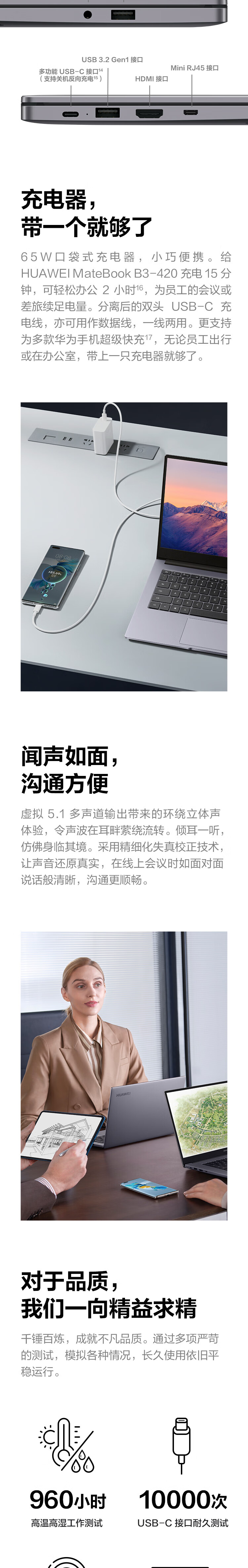 自營(yíng)華為筆記本電腦 MateBook B3-420 14英寸輕薄本 (i7-1165G7 16G 512G) 深空灰