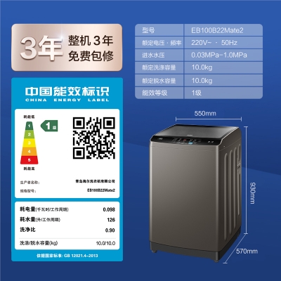 商品名稱:海爾(Haier)波輪洗衣機(jī)全自動 直驅(qū)變頻 10公斤玻璃上蓋 升級內(nèi)桶 除菌健康洗 EB100B22Mate2