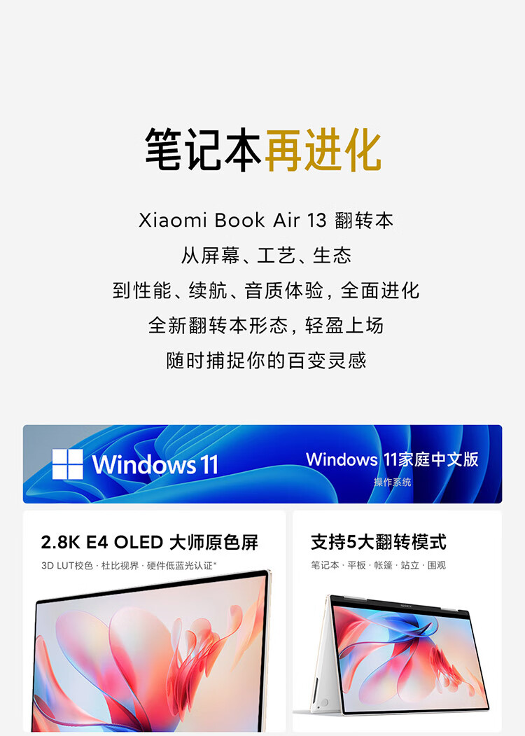 自營(yíng)小米 Xiaomi Book Air 13 2.8K OLED高清屏筆記本電腦(酷睿i5 16G 512G 翻轉(zhuǎn)觸控屏 正版office 辦公長(zhǎng)續(xù)航)