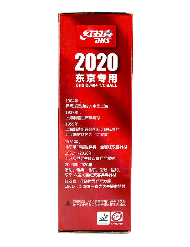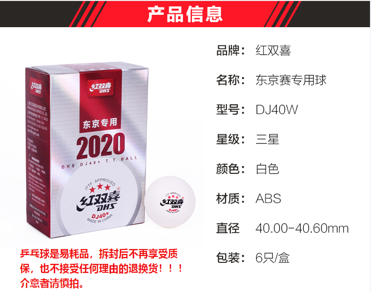 商品名稱:紅雙喜乒乓球三星 DJ40+東京奧運(yùn)會(huì)比賽用球 白色6個(gè)/盒