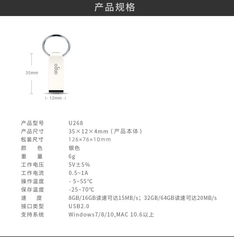 自營(yíng)愛(ài)國(guó)者(aigo)8GB USB2.0 U盤(pán) U268迷你款 銀色 金屬U盤(pán)