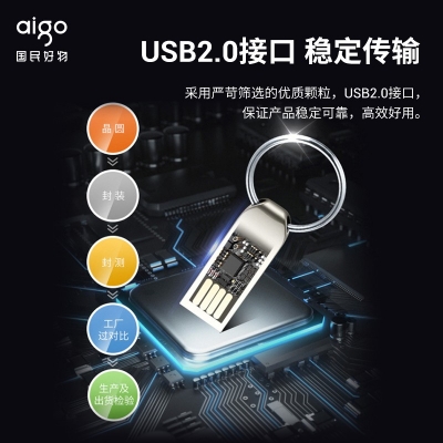商品名稱:愛國者(aigo)32GB USB2.0 U盤 U268迷你款 銀色 金屬U盤