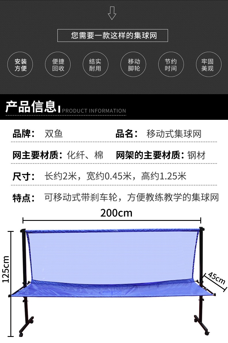 商品名稱:雙魚乒乓球 落地式集球網(wǎng) 移動(dòng)式集球網(wǎng)