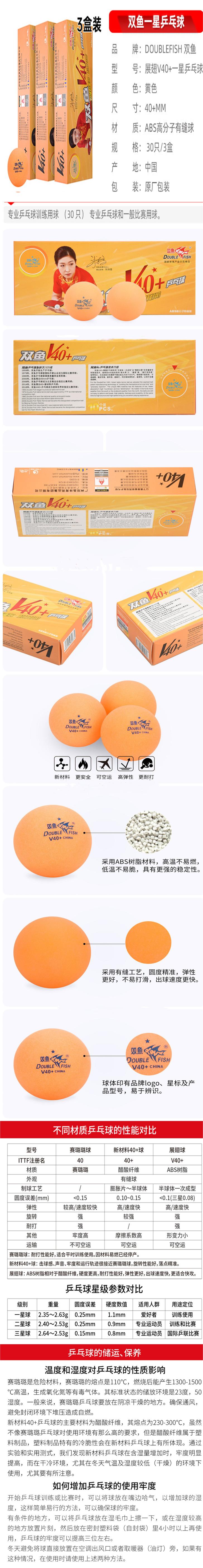 商品名稱:雙魚 V40+ 乒乓球 一星展翅 ABS新材料 黃色 10只/盒 3盒裝 合計30個