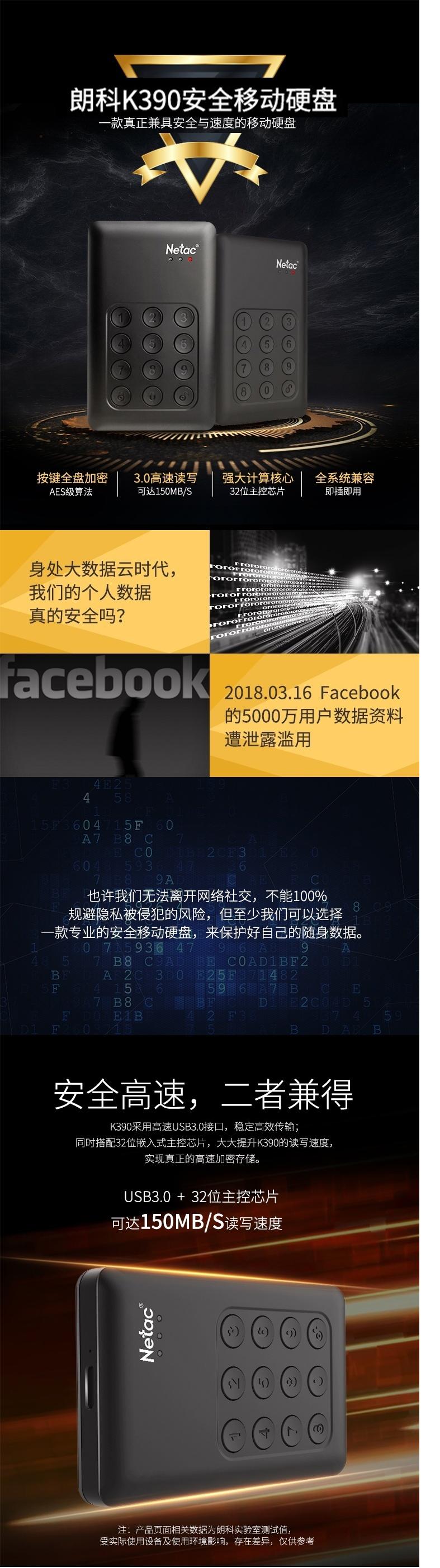 商品名稱(chēng):朗科(Netac)1TB 移動(dòng)硬盤(pán) K390安全系列 USB3.0 2.5英寸 獨(dú)立按鍵硬件加密