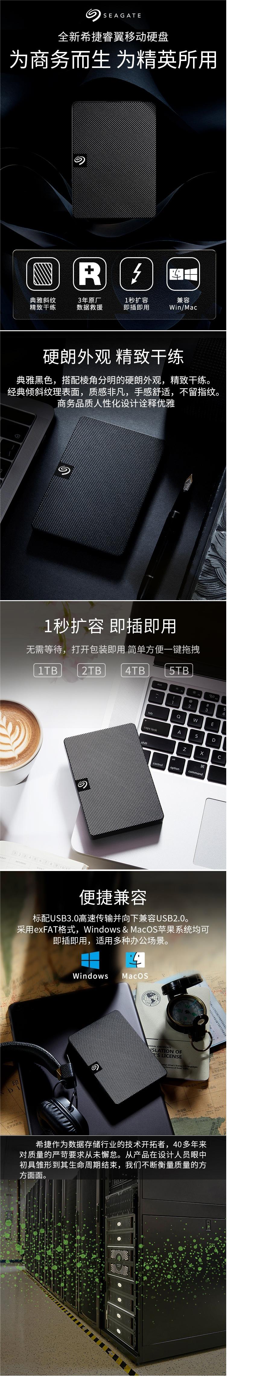 自營希捷(Seagate) 1TB 移動硬盤 USB3.0 2.5英寸 便攜 兼容MAC