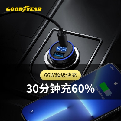 自營(yíng)固特異(Goodyear)車載充電器66W超級(jí)快充點(diǎn)煙孔轉(zhuǎn)換器雙口閃充華為蘋果小米GY-2603