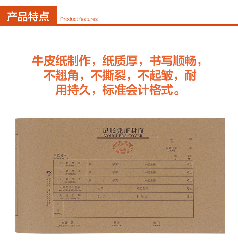 自營浩立信電腦記帳憑證封面540*143mm50張/包 大號憑證封面(適用240*140MM憑證)0021